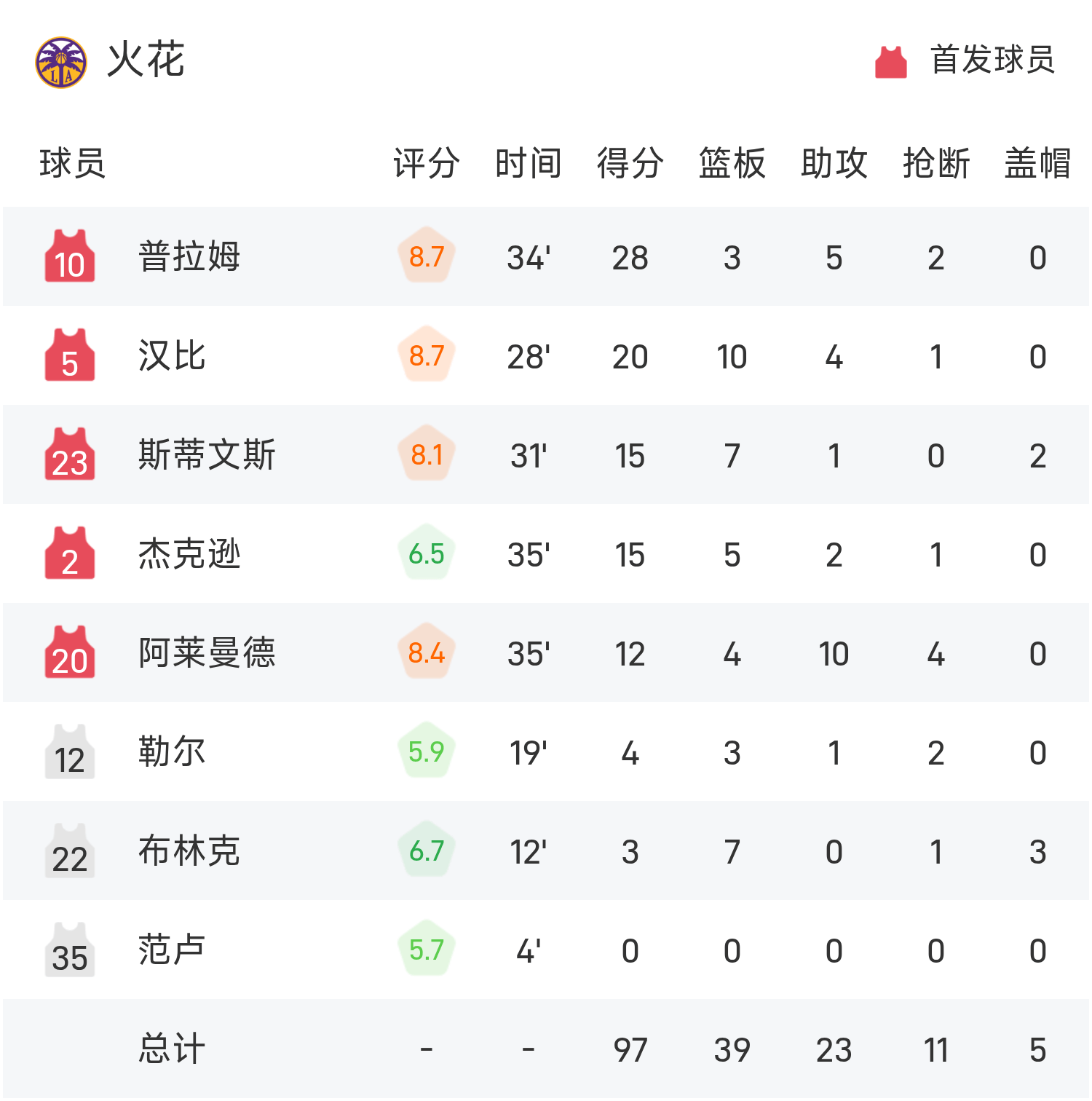 普拉姆得到28分2板5助率队取胜,佩奇空砍全场最高的29分4板5助。