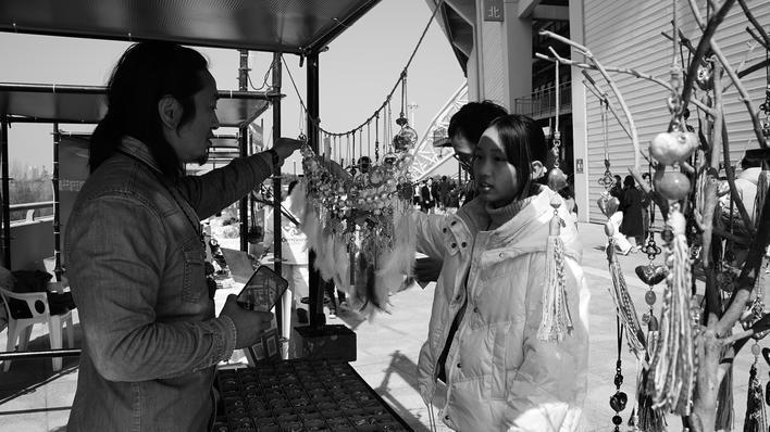 赛场内的比赛尚未开始,赛场外的热闹早已拉开帷幕。市体育中心外的文旅集市让足球赛事与地方文化和特色产业相融,秀洲特色元素是其中一抹亮眼的色彩。新塍镇洛东村谦石花草间的文创摊位前人头攒动。南湖菱挂件、银杏烧箔画、植物拓染等文创产品整齐摆放,每一件作品都饱含田园气息与文化底蕴。